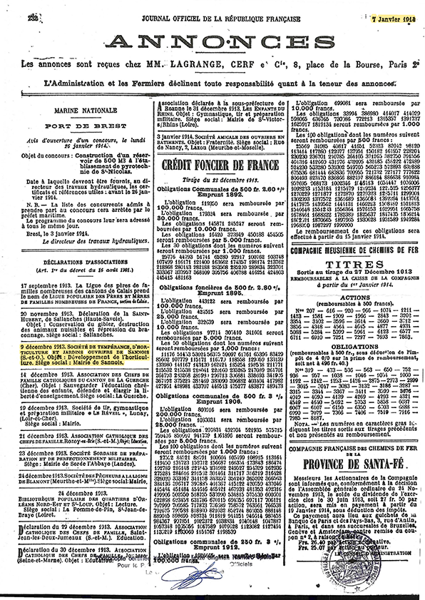 Première parution au journal officiel du 7 janvier 1914 : L'association apparaissait sous le nom historique de "SOCIÉTÉ DE TEMPÉRANCE D'HORTICULTURE ET JARDINS OUVRIERS DE SANNOIS", avec pour objet : Développement de l'horticulture, et dont le siège se situait à la mairie de Sannois. Pour mémoire, à l'époque et jusqu'au 1er janvier 1968, la ville de Sannois était située en Seine-et-Oise (78)...